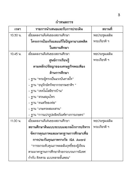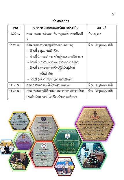 กำหนดการประเมินสถานศึกษาเพื่อรับรางวัลพระราชทาน ปีการศึกษา 2562